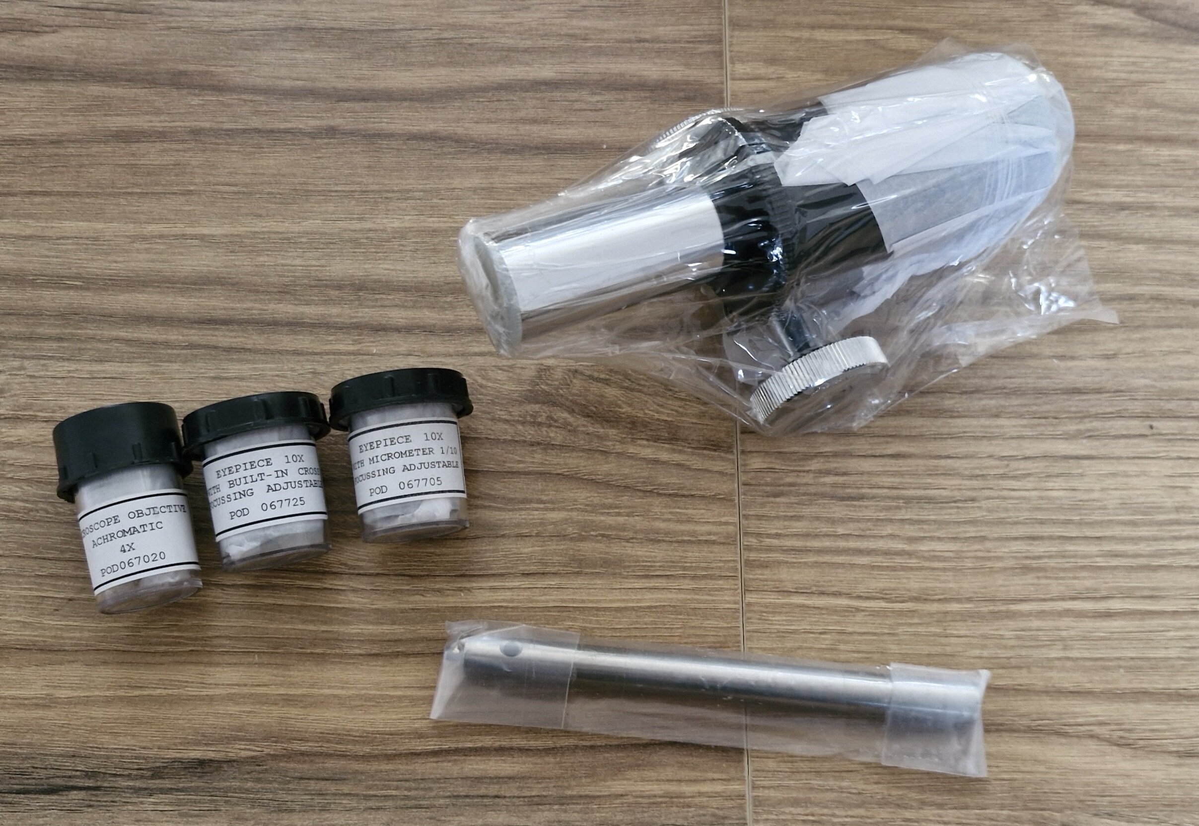 - dwa okulary mikrometryczne 10x (precyzja 0,1 mm, celownik krzyżowy)