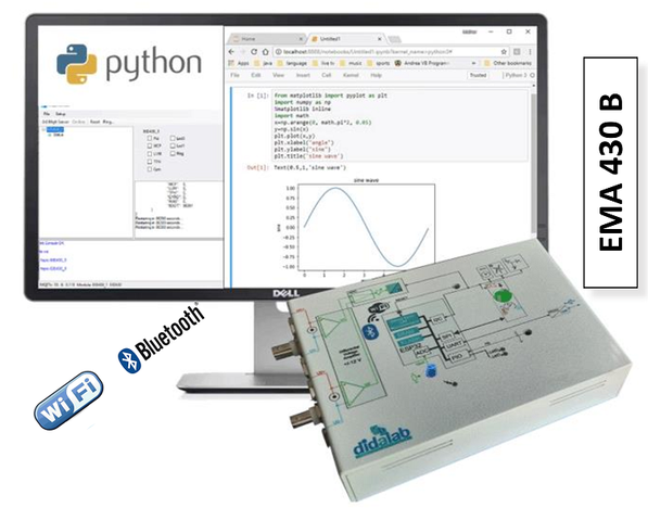Ergonomiczny, przyjazny dla użytkownika i intuicyjny zestaw edukacyjny wyposażony w interfejs WiFi oraz Bluetooth. Stanowisko umożliwia rejestrację danych z czujników (wewnętrznych i zewnętrznych) w czasie rzeczywistym. Stanowisko edukacyjne wyposażono w czujnik wilgotności, ciśnienia, temperatury, natężenia światła, przyśpieszenia liniowego, czujnik pola magnetycznego oraz dwa wejścia analogowe dla sygnałów +/- 10 V. Zestaw pozwala na naukę programowania Python z wykorzystaniem biblioteki analiz technicznych (Technical Analysis Library in Python’s documentation). Zestaw jest kompatybilny z innymi stanowiskami dydaktycznymi, umożliwia wykonywanie ćwiczeń związanych z obróbką danych pomiarowych oraz badanie czujników (wbudowanych oraz innych, zewnętrznych czujników napięciowych).