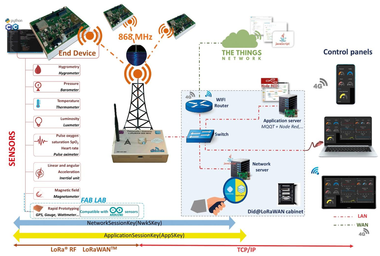 Sieć LoRaWAN posiada topologię gwiazdy. Każdy element jest podłączony do pojedynczego koncentratora, który nadzoruje i zarządza kilkuset czujnikami rozproszonymi na obszarze o promieniu kilku kilometrów. Firma Didalab opracowała dydaktyczny zestaw czujników oraz koncentratorów dających możliwość demonstracji działania i wdrażania kompletnego systemu IoT (Internetu Rzeczy) od czujnika, przez bramkę, do serwera.