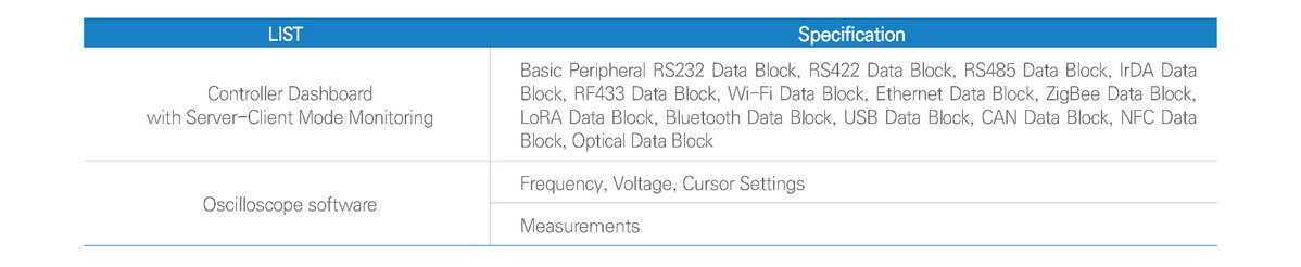 - Oscyloskop (w zestawie) do intuicyjnej analizy danych komunikacyjnych.