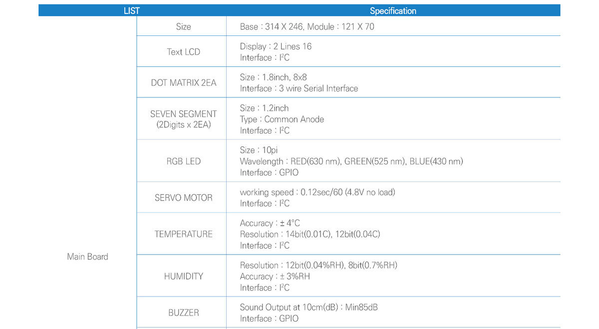 - Komunikacja z urządzeniami peryferyjnymi, takimi jak czujnik światła, czujnik temperatury/wilgotności, w celu przeprowadzania ćwiczeń.