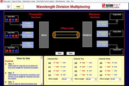 - techniki transmisji światłowodowej - interaktywna symulacja,